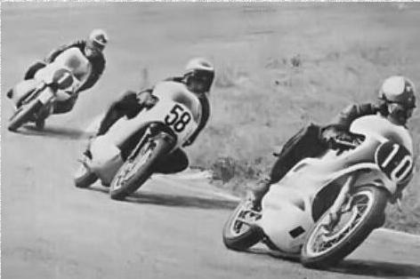 Jan rijdt dan op een NSU met Dolfin kuip 250cc, Marco op een Yamaha