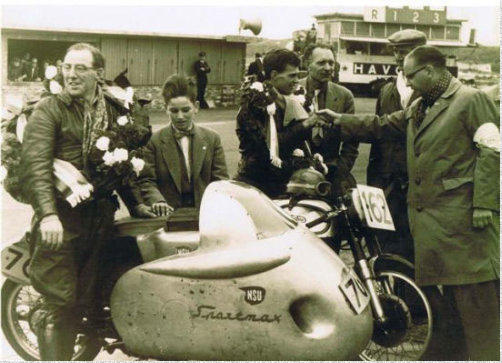 Ook op de 3 NSU' s van Jan hebben oud coureurs gereden. Zelf heeft