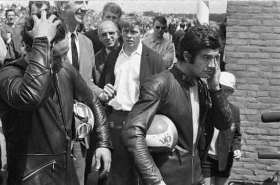 Jan rijdt dan op een NSU met Dolfin kuip 250cc, Marco op een Yamaha